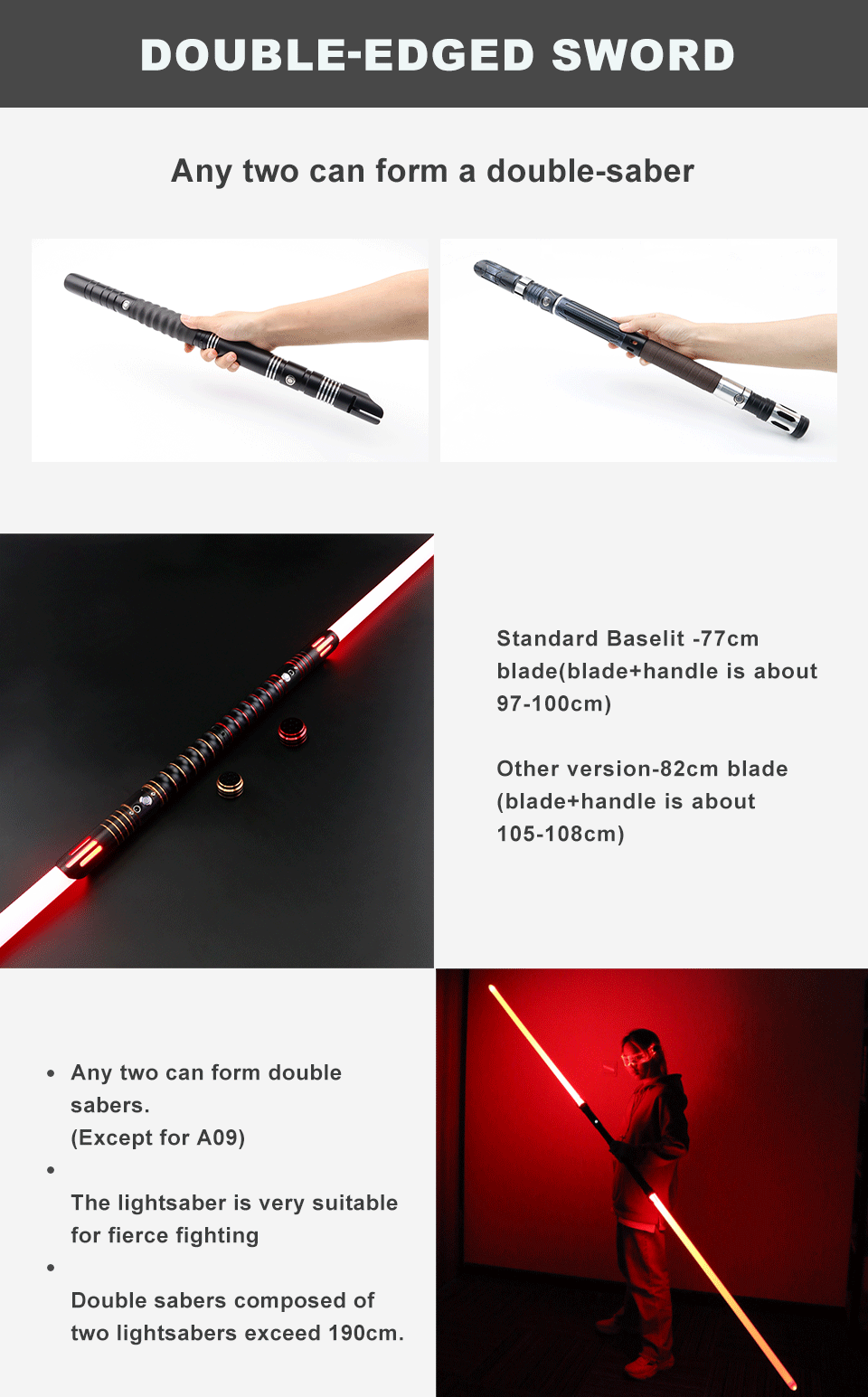 Flo Fritsch Literally everything is as seen, everything came as advertised, was even surprised to find that there was app control for the lights, sound e.t.c. Good weight and fun to swing around + really good prices.